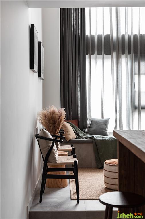 飄窗與沙發(fā)結(jié)合設(shè)計(jì)、聯(lián)系上地臺(tái)、帶置物空間的樓梯的設(shè)計(jì),界定出客廳的新范圍,也減低了原本過高的飄窗的高度,讓飄窗變成了舒適沙發(fā)。裝修設(shè)計(jì)