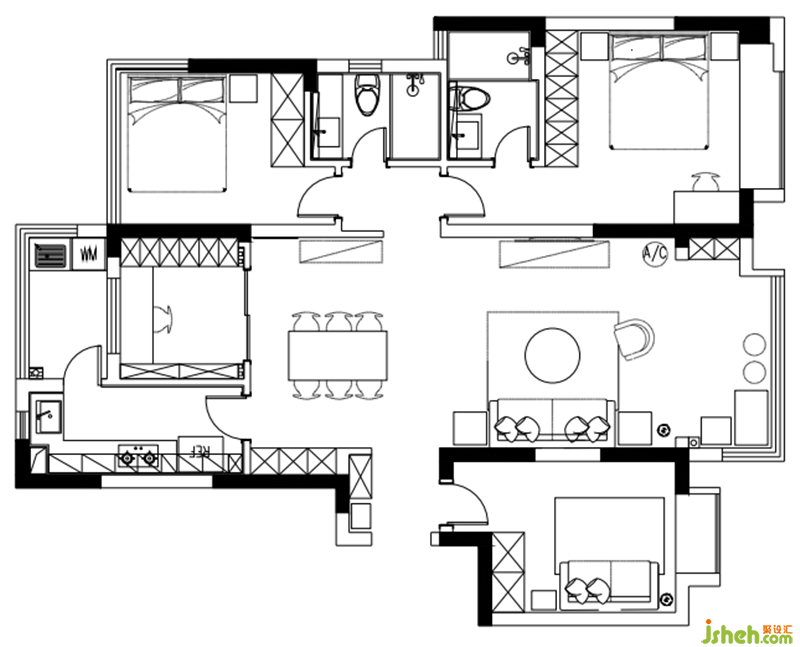 【案例戶型】:4室2廳2衛(wèi)