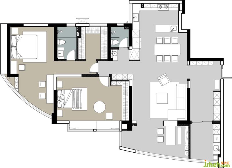 這套購(gòu)置的新房便交由我們?cè)O(shè)計(jì),由于是改善型住宅,所以將更多的重點(diǎn),放在如何通過(guò)設(shè)計(jì)提升生活品質(zhì)上。最后的呈現(xiàn),便有了這套四室改兩室的超舒適大平層。