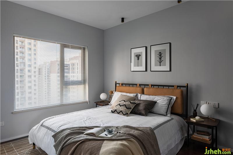 主臥保留了原開發(fā)商的衣柜和地板,利用一張3m*2m的地毯,遮住精裝丑陋地面。柔軟舒適的棉麻床品與深色木邊幾的溫潤氣質(zhì)相呼應(yīng),是給睡眠開一個好兆頭。
