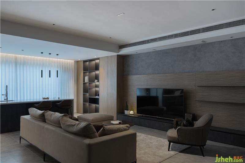 屋主們非常明確自己在色彩上的喜好,灰白棕做主基調(diào),簡潔理性的空間里利用暖色光源中和冷清感。入住后的他們迎接了一個新生命 — 黑色法斗碳花入住,從此-1樓有了一方它的小天地,每天歸家時一定能迎上一雙炙熱且真誠的眼睛。