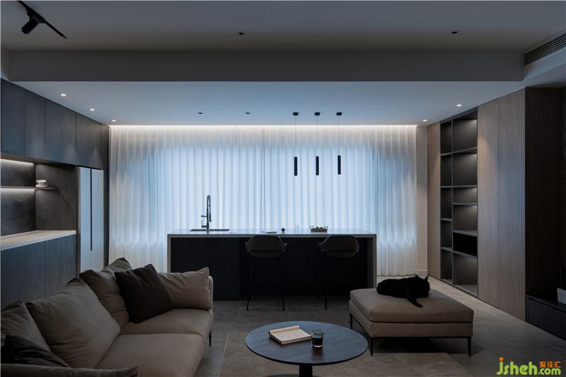 整屋柜體定制更好的滿足桃子姐的手工藝品收藏,男主人的手辦,甚至是夫婦倆的藏酒,再配合一組島臺設計,便完成了桃子姐烘焙、會客的心愿。