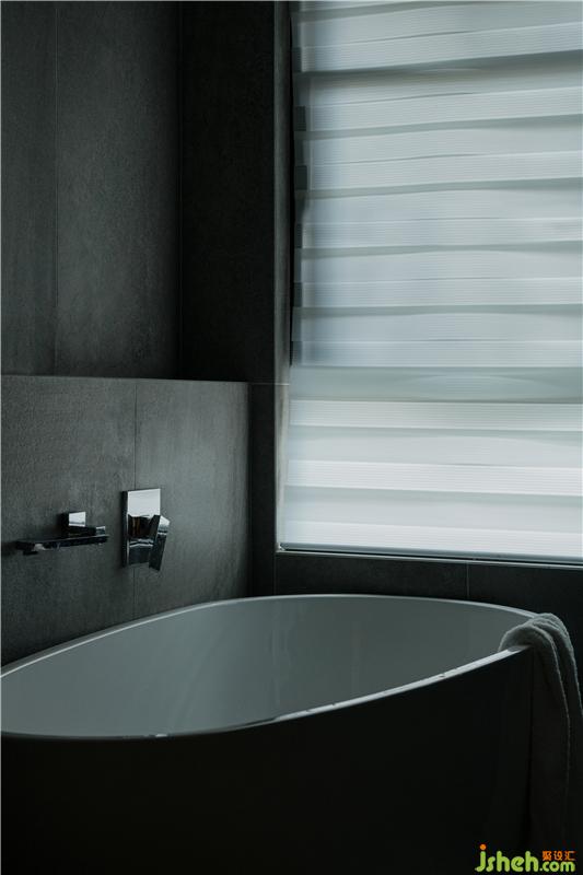 通過深灰色石材梯步進入2樓,隨行梯步燈一盞接一盞的照亮你腳下的路。入口左側分布的是書房與兒童房,右側是客廳搭建起的主臥,這樣便保證了一個擁有獨立休閑陽臺、衣帽間以及寬敞衛(wèi)生間的舒適主臥空間,充分的利用了2樓面積。