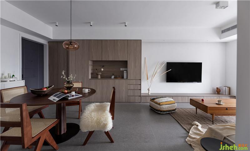 客廳的軟裝我們選擇的MAZAY經(jīng)典的柚木系列茶幾以及藤編休閑椅,搭配ASIDES皮埃蒙特布藝沙發(fā)組合,這個老牌家具制造商出品的家具與我們想要傳達給屋主的理念相契合,既有經(jīng)典簡約的造型同時滿足舒適度。