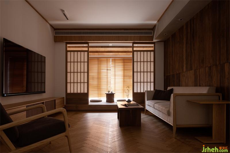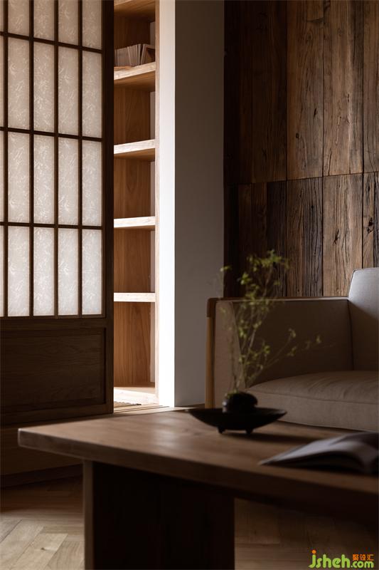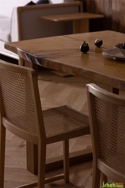 白蠟?zāi)具厧着c黑胡桃木茶幾,甚至是白橡木地板,從人類最原始的居住出發(fā),與自然毗鄰,客廳區(qū)5種不同木材的搭配,似乎透露出些許“京都安縵”的意韻。