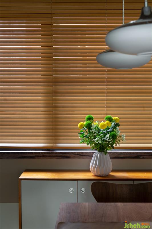 屋主入住后,栽種了許多綠植,她說(shuō):“我的家里不允許出現(xiàn)一盆假花?!庇谑牵烊坏臒釒в炅直沩樌沓烧抡紦?jù)入戶臨窗一側(cè),吸納著自百葉窗透過(guò)的暖陽(yáng)。隱約光影映照出仙人掌的形狀打進(jìn)屋里,美與生活氣息,在此刻達(dá)到平衡。
