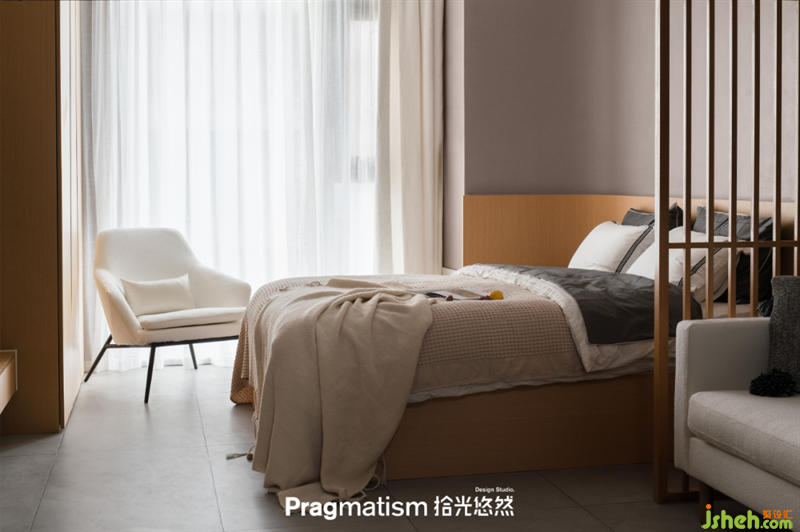 正對墻體區(qū)域為U然木作衣柜,一門到頂式的設(shè)計最大化提升收納功能,內(nèi)部各柜體分門別類,滿足屋主不同衣物收納需求。雖然是便捷型小戶型一人居,但并未因此砍掉陽臺,反而留下采光最好的小小區(qū)域,滿足屋主休憩閱讀。