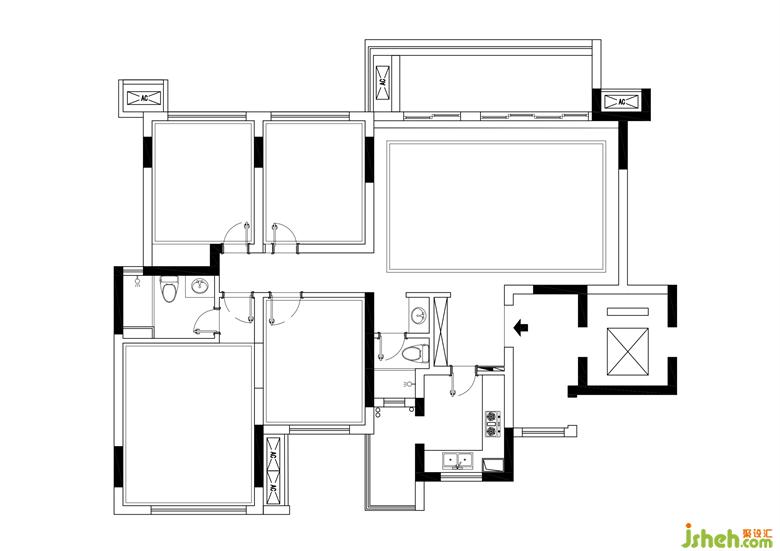 原始為套四戶型,而常住人口只有一家三口,親朋好友基本不會留宿,套四的戶型綽綽有余。為了提升居住品質,家裝設計本套項目由套四改成了套三,房間配置為:主臥,衣帽間,兒童房,書房。