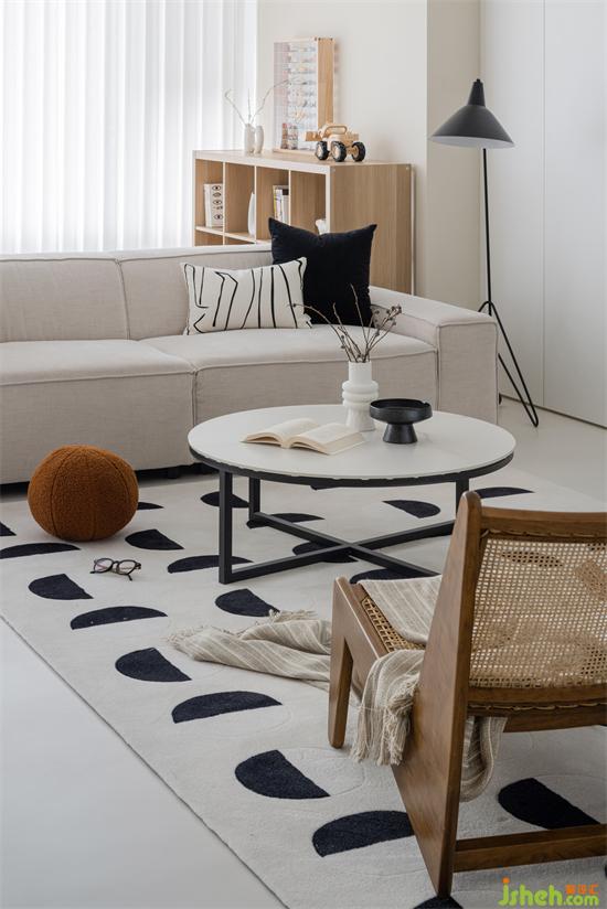 奶白、奶咖、淺駝、原木,柔和的同色系讓空間里的人倍感溫暖治愈。放下茶幾,這兒是一個(gè)人的閱讀區(qū);家裝設(shè)計(jì)移走茶幾,柔軟的地毯包容更多的慵懶姿態(tài),大人笑著聊天、小朋友擺弄著小火車,剛烤好的面包放在一旁,空氣中彌漫著濃濃的香甜味兒。