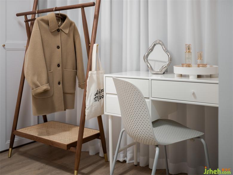 屋主的衣物較多,家裝設(shè)計(jì)便將小房間規(guī)劃為衣帽間,并增加梳妝臺(tái)和晾衣架,用來(lái)掛放隔夜衣。