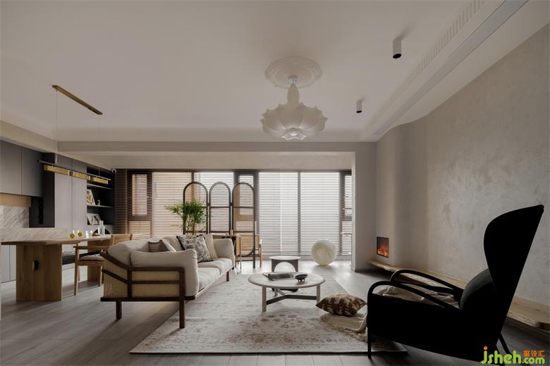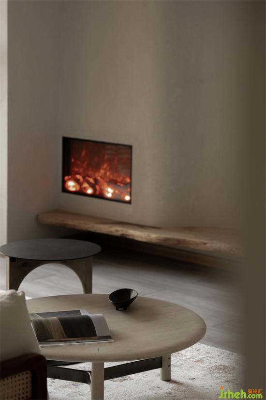 客廳陽臺打通后封落地窗,再裝上木質(zhì)百葉簾。成都家裝設(shè)計(jì)百葉簾全部合上,光線全都隱匿起來,室內(nèi)昏昏暗暗的、壁爐閃著火光,好像一幅油畫。