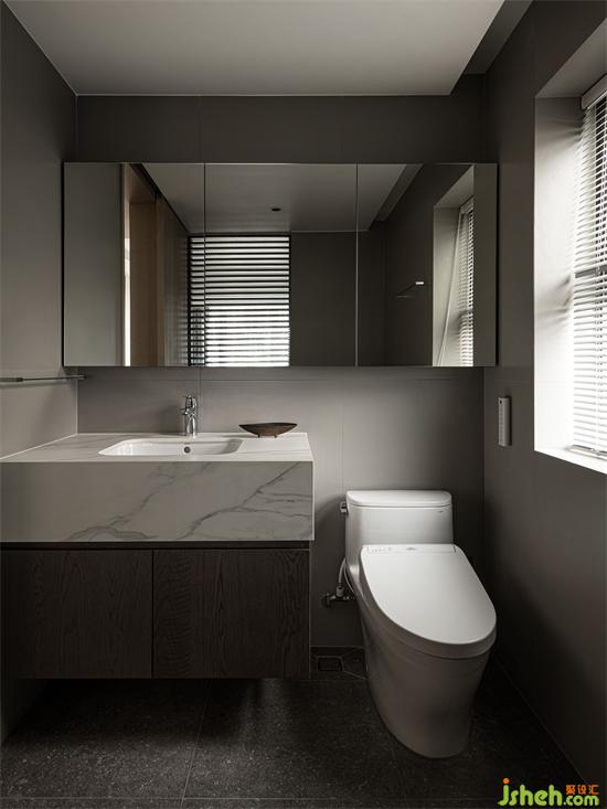 主衛(wèi)和主臥之間采用橫向木格柵,使兩空間存在曖昧的互動。沐浴溫暖,緩解一天的疲勞,家裝設(shè)計(jì)以完美的姿態(tài)迎接第二天的到來。