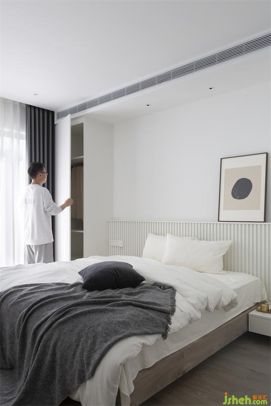 屋主出行時(shí),沒(méi)有過(guò)多衣服儲(chǔ)放需求,更重視臥室的舒適程度。成都家裝設(shè)計(jì)現(xiàn)場(chǎng)制作的木質(zhì)地臺(tái)成為床的骨架,就算長(zhǎng)期無(wú)人維護(hù)也可以保持很好的狀態(tài)。