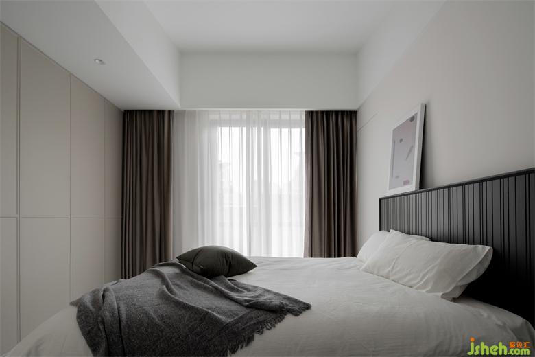 床頭影影綽綽的吊燈,家裝設(shè)計讓躺在床上看書或是玩手機(jī)變成極為舒服的事。一整面內(nèi)嵌的衣柜,滿足夫妻二人的日常所需。頂部的光源,為大面積衣柜的使用帶來便利。家裝設(shè)計