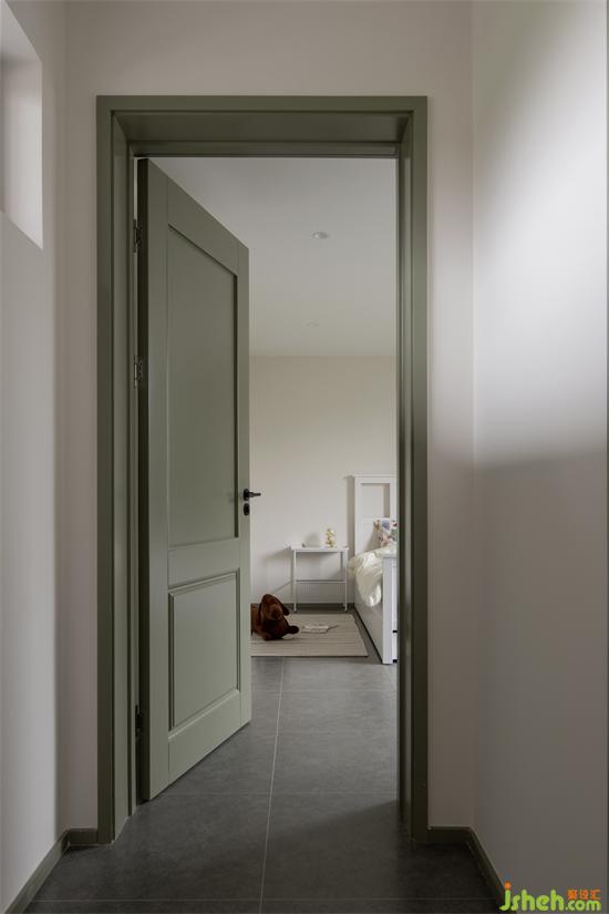 穿過光束,橄欖綠木門+棕色的玩偶,奇妙的色彩碰撞,帶大家進(jìn)入的童趣十足的兒童空間。