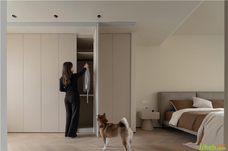 雙開(kāi)門推入,將步入主臥的儀式感拉滿。
