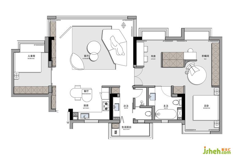 領(lǐng)地瀾山裝修設(shè)計(jì)師在走廊與其他房間,劃分了部分區(qū)域。將次衛(wèi)設(shè)計(jì)為三分離衛(wèi)生間,從而達(dá)到盥洗室、淋浴房、馬桶間、生活陽(yáng)臺(tái),活動(dòng)互不影響的狀態(tài)。