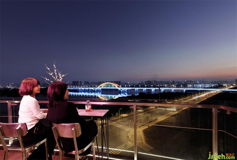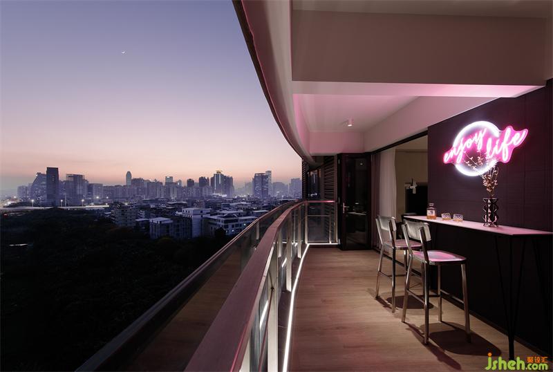 超長景觀陽臺上靠墻布置一張桌子,搭配彩色氛圍燈,陽臺瞬間變身情調(diào)吧臺,打造出一方讓人享受片刻休閑的完美領(lǐng)域。