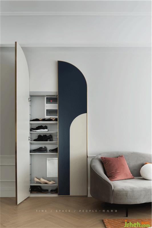 好吧,我要揭露這個(gè)案例的第一個(gè)機(jī)關(guān),剛好這個(gè)位置是原來開發(fā)商預(yù)留的一個(gè)電箱位,我們巧妙的將它設(shè)計(jì)成一個(gè)特別的屏風(fēng),又是業(yè)主的第二個(gè)備用鞋柜,不然島臺(tái)的鞋柜是遠(yuǎn)遠(yuǎn)不夠。