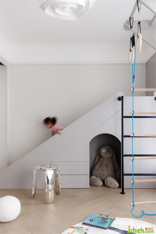 將原本兩個(gè)小的房間打通后改造成一個(gè)大的房間作為兒童游樂(lè)區(qū)域,滑梯 吊環(huán) 大空間 無(wú)限的奔跑是小朋友肆意快樂(lè)的童年。