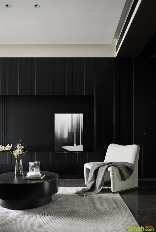 寬敞的公區(qū)一分為二,客餐廳融合且獨立,空間交流融洽又不顯雜亂。家裝設(shè)計毫無疑問的無主燈設(shè)計,主吊頂選擇留白處理,避免壓抑逼仄,其余墻面及頂部均以不同材質(zhì)飾面板覆蓋,將暗黑風(fēng)的質(zhì)感彰顯得淋漓盡致。