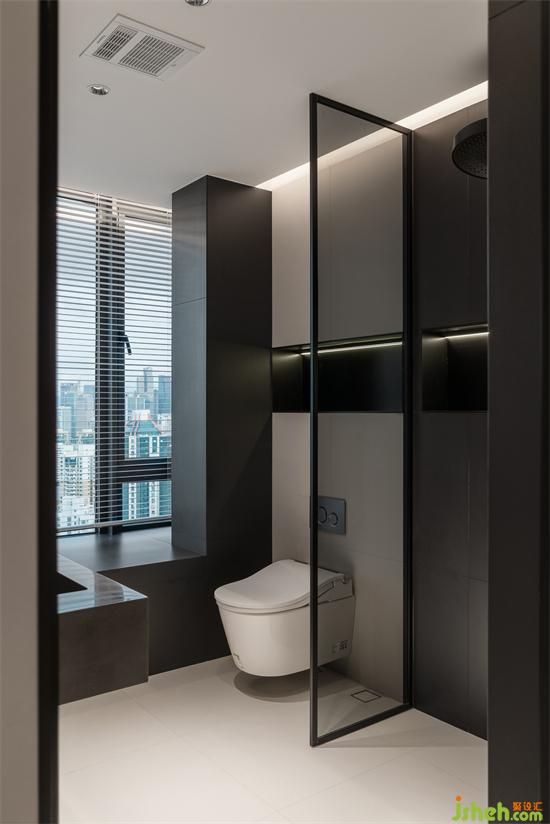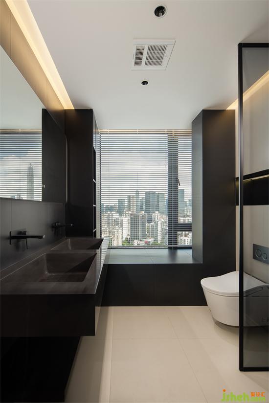 墻面壁龕中依舊嵌入燈帶,同樣用飾面板包裹,家裝設(shè)計(jì)細(xì)節(jié)上精致無比,衛(wèi)浴空間呈現(xiàn)無與倫比的時(shí)尚氣息,媲美五星級(jí)酒店的至尊體驗(yàn)。