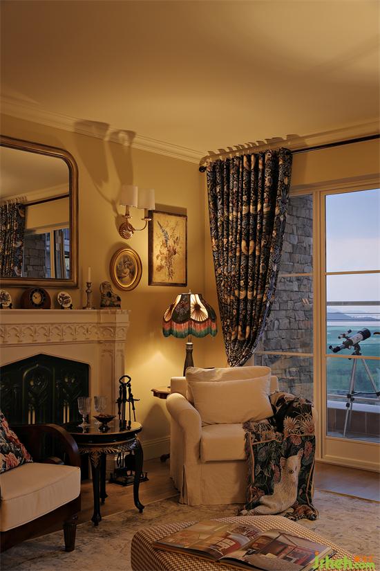 站在陽臺縱覽整個公區(qū),硬裝簡潔大氣,軟裝豐富且協(xié)調(diào),處處呼應(yīng),客廳整體布局隨性不刻板,沙發(fā)椅對稱而置,深圳金地翠堤灣家裝設(shè)計(jì)以壁爐為空間重心,形成圍爐而坐的氛圍,再次將英倫風(fēng)情突出刻畫。