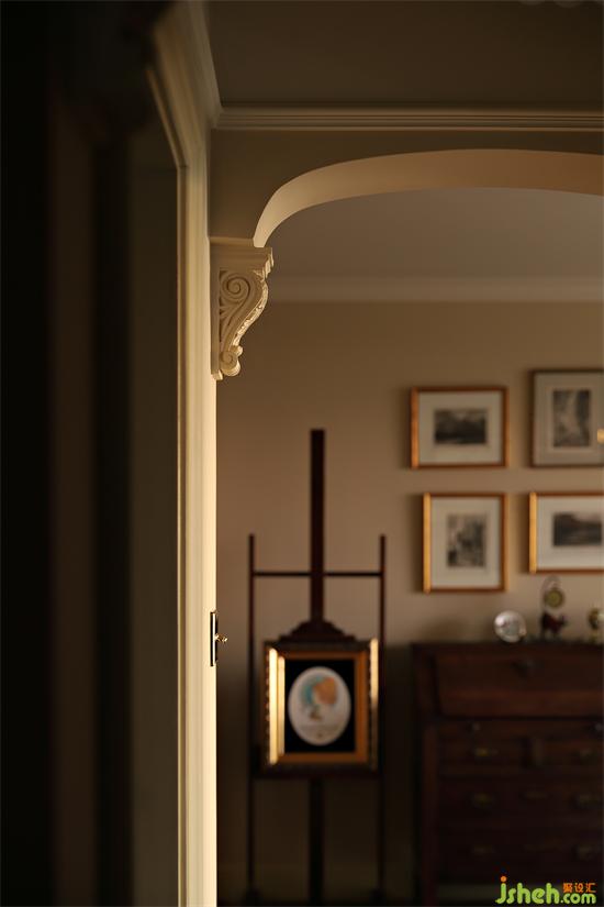 拱形設(shè)計(jì)搭配雕花梁托,自然光影沉穩(wěn)靜謐,頗有電影般的故事感,又仿佛藝術(shù)館的角落,讓人浮想聯(lián)翩。