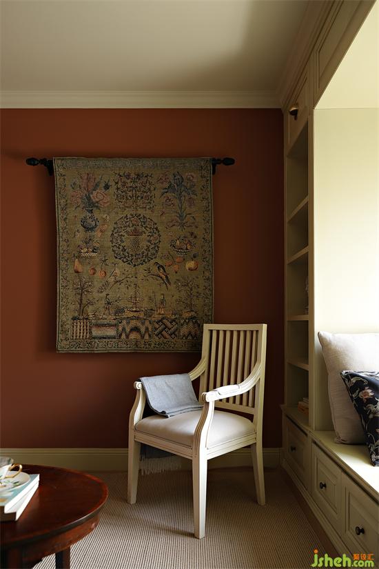 飄窗的設(shè)計(jì)是整個(gè)書(shū)房的亮點(diǎn),原本突兀的飄窗在英式風(fēng)里稍顯違和,我們?cè)O(shè)計(jì)成書(shū)柜+卡座的形式,深圳金地翠堤灣家裝設(shè)計(jì)打造成一個(gè)閱讀角,氛圍瞬間輕松愜意,窗戶也特意改成百葉窗,彰顯英倫風(fēng)格的獨(dú)特復(fù)古感。