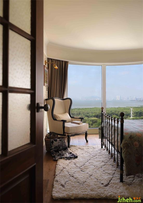 臥室門定制木材搭配壓花玻璃,細(xì)節(jié)到門把手,深圳金地翠堤灣家裝設(shè)計(jì)都是復(fù)古精致的款式,圓弧形落地窗盡攬綠樹(shù)海洋美景,拉開(kāi)窗簾的那一刻,瞬間被大自然治愈。