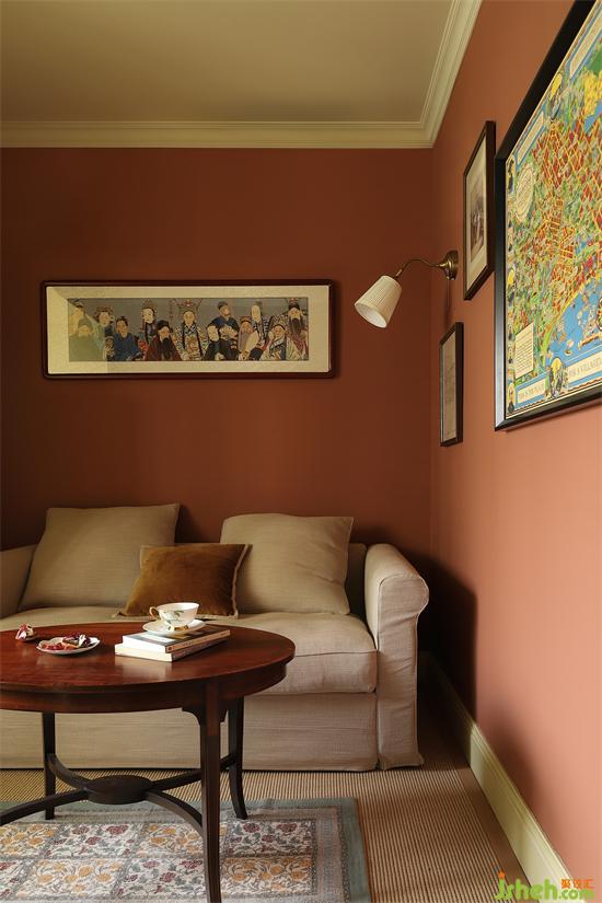 中古茶幾搭配一張碎花地毯,加強(qiáng)地面層次感,家裝設(shè)計(jì)精致的布置再一次彰顯屋主的生活格調(diào),以及對(duì)生活的熱愛(ài)。