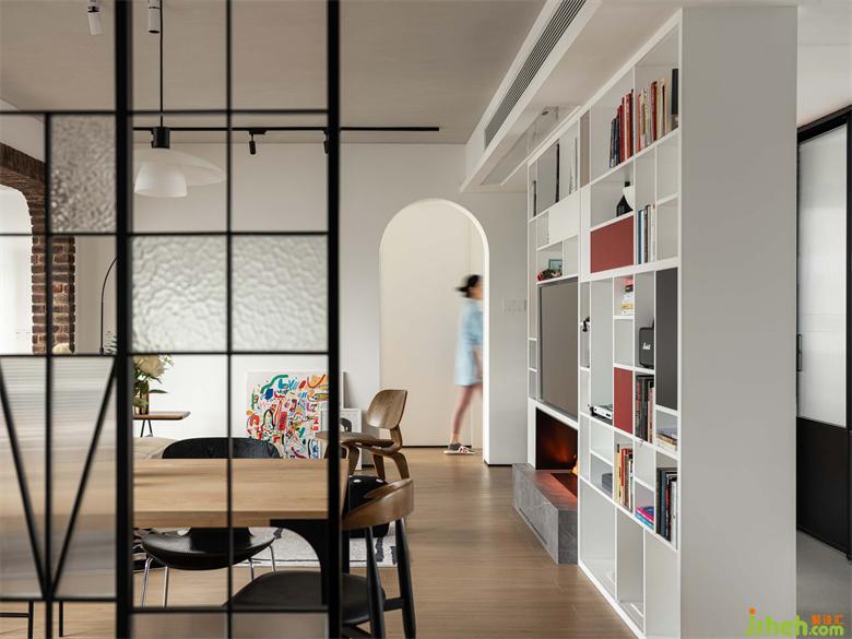 書架亦是展示柜,不同顏色的書籍仿佛跳動的音符,呼應(yīng)五彩斑斕的裝飾畫,深圳南山東關(guān)樂尚林居家裝設(shè)計(jì)為白色空間帶來奇妙的藝術(shù)感。