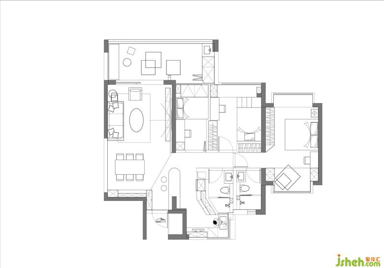 空間布局較為常規(guī),但空間利用率不高,尤其是入戶區(qū)較為狹窄,廚房也較為擁擠,影響生活質(zhì)量。