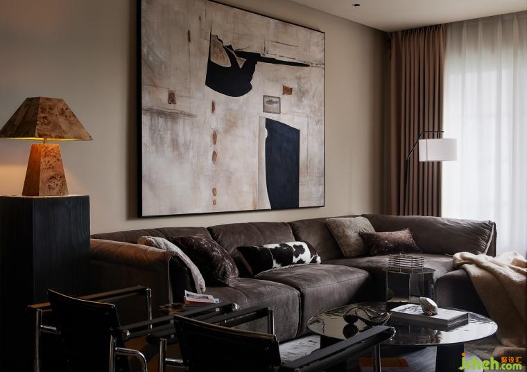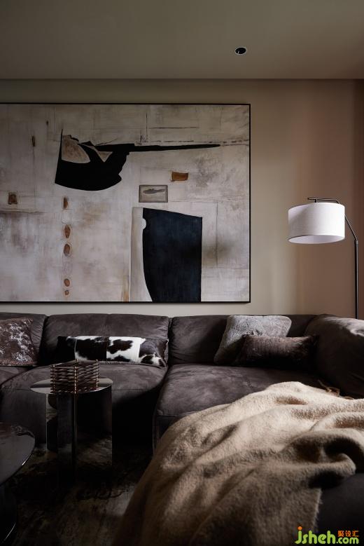 一幅巨大的藝術調抽象畫掛在客廳的主墻上,能成為視覺焦點,展現(xiàn)主人的獨特品味。