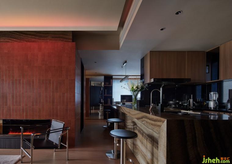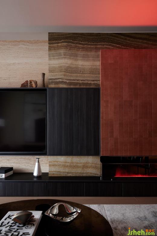廣州住宅設計不同材質的組合設計成了空間中的一大亮點,憑借著獨特質感詮釋著自由與不拘束的姿態(tài),隱形壁爐營造出懸浮的視覺效果,讓材質包容起更多個性與自由。