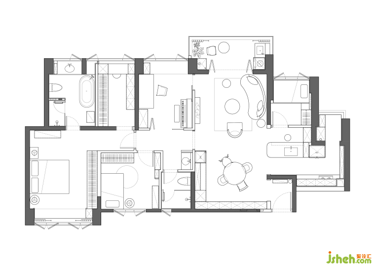 5. 主衛(wèi)墻體內(nèi)推,擴(kuò)大主衛(wèi)空間,并打造獨(dú)立衣帽間,提升業(yè)主居住舒適度。