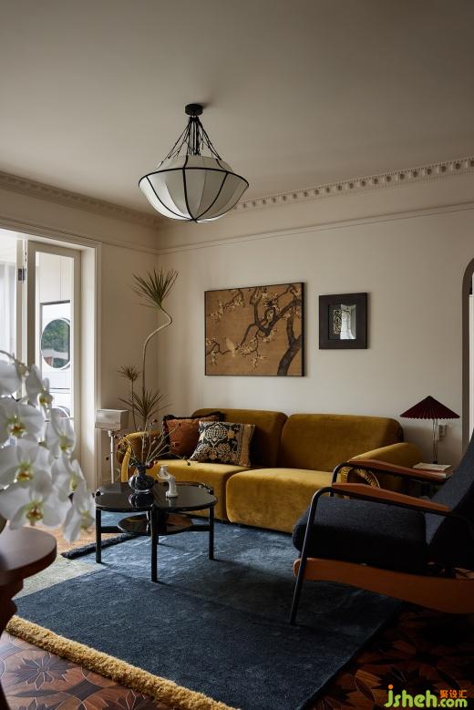 法式與復(fù)古美學(xué)交織演繹,暖色調(diào)下交融出斑駁光影,午后有人斜倚在沙發(fā)上,目光游離在畫與地毯之間,思緒也漸漸飄遠(yuǎn)。