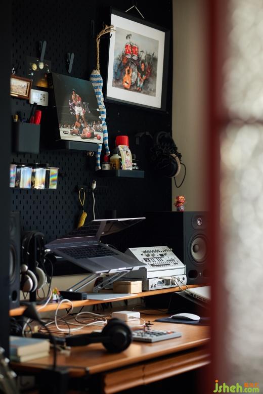 更改原房門(mén)以折疊式打開(kāi),加強(qiáng)內(nèi)外空間的連接交流,關(guān)閉時(shí)作為音樂(lè)房獨(dú)立使用空間,打開(kāi)又是連通的空間,詮釋著實(shí)用和審美的平衡。