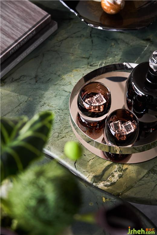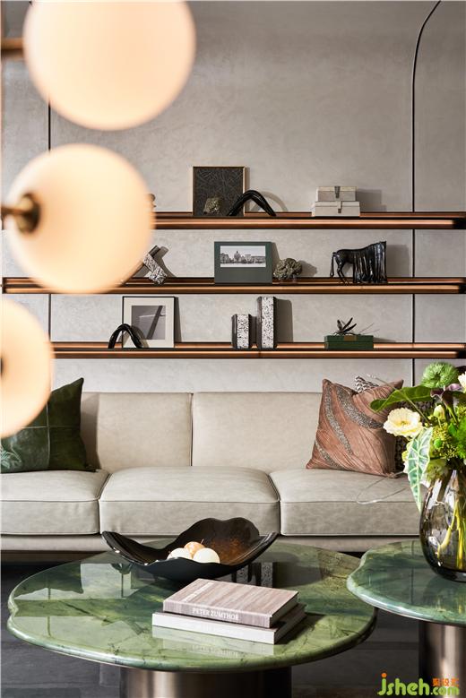 瓦松綠不過(guò)分艷麗,也不過(guò)于隱匿,是一種高級(jí)、優(yōu)雅、溫柔的綠色,是冷清中擁有生機(jī)感的綠色。以瓦松綠點(diǎn)綴空間,讓整個(gè)空間既有蓄勢(shì)的氛圍,又有向上的張力。