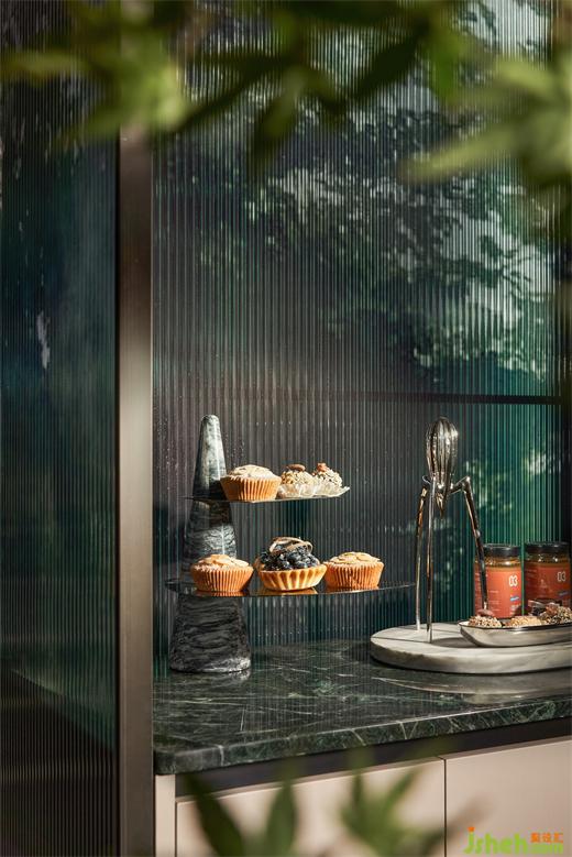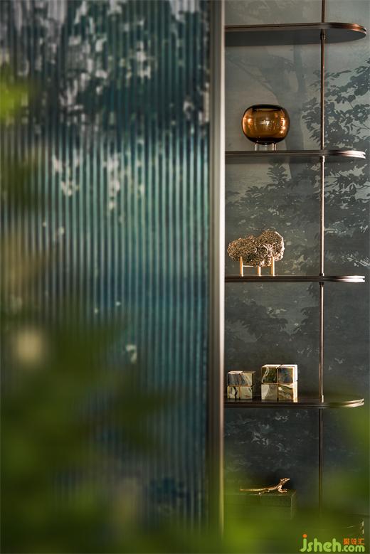 開門見綠,沁人心脾,一層玄關(guān)處的手繪墻紙伴著向上延伸的夾絲玻璃,將“蒼綠”溫柔呈現(xiàn),仿佛誤入?yún)擦?,讓人情不自禁深入探索?nèi)在的美好。