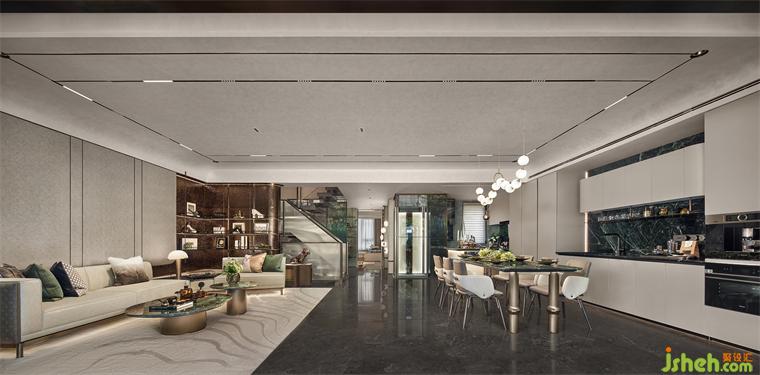 深入向前,客廳似一幅畫卷徐徐展開,闊綽尺度,奢適無界,開放舒展,視線寬敞。特色捫皮、夾絲玻璃與真絲面料強調(diào)卓越品質(zhì),不銹鋼與石材在碰撞中催生別樣美感。樣板間設(shè)計自然優(yōu)雅的氣息彌漫整個空間,包容、隨性的生活理念也在盡情蔓延。