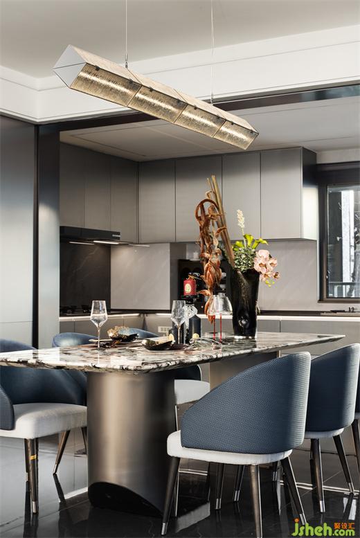 中西廚兼而有之,功能分區(qū)明晰合理,以此建立情感與美食的橋梁。明亮的燭光映照出家人笑臉,萬家燈火中凝聚著無數(shù)歸家期盼,觥籌交錯間展現(xiàn)出居家美好。