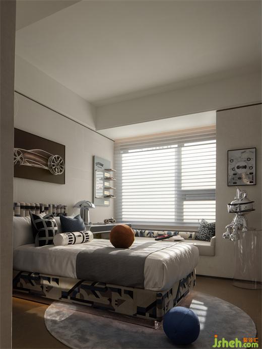 孩童天馬行空的想象力在獨立、自由的場域中綻放,淺色的基底預(yù)留無限可能,墻面鮮明的線條韻律充盈著自由靈動氣息,一體式床頭與書桌的結(jié)合,巧妙實現(xiàn)整合與疊加,樣板房設(shè)計以趣味個性承載起少年每個無憂無慮的夢。