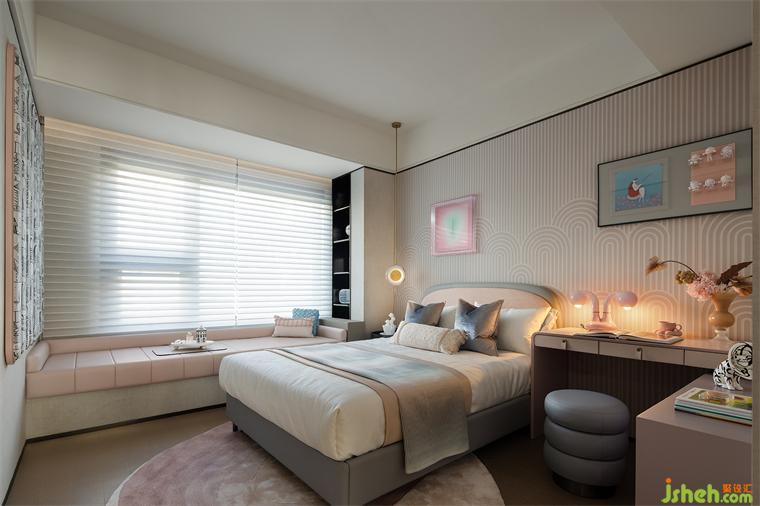 在簡潔幾何形的壁紙鋪就下,加以線性吊燈的點綴,提升了女兒房的整體層次,雖有繽紛色彩,卻多而不繁,溫柔細膩的基調(diào)筑造起公主夢幻般的小天地,自然流淌出的粉嫩與愜意在此輕柔相遇,溫潤了時光。