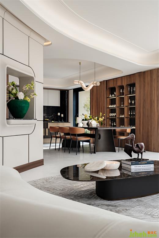 大平層設(shè)計(jì)師還將客廳一隅有效整合,置入個(gè)性化妝間既提供了便捷服務(wù),又不會(huì)影響整體性與流暢度。溫潤(rùn)的質(zhì)地,靈動(dòng)的形態(tài),兼具美學(xué)與功能。