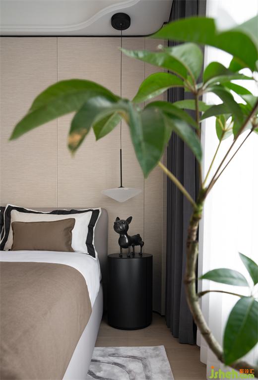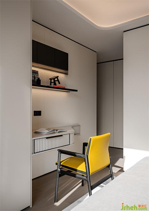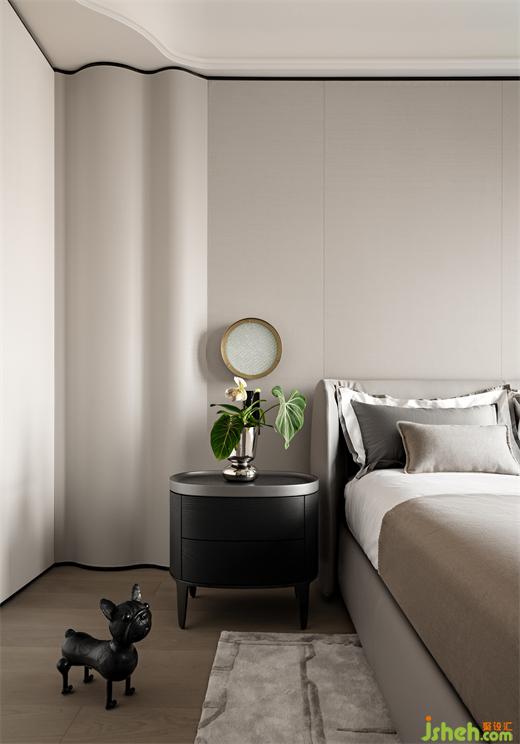 兩個(gè)次臥也浸潤(rùn)于柔和雅致的灰調(diào)之中,大平層設(shè)計(jì)延續(xù)主臥簡(jiǎn)約的設(shè)計(jì)手法,墻面選用天然織物鋪就,共同構(gòu)筑柔和且堅(jiān)固的堡壘,庇護(hù)身心。