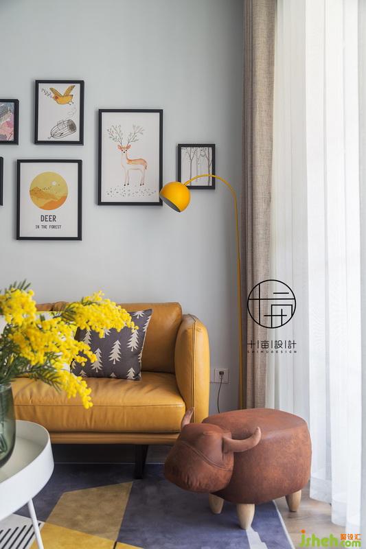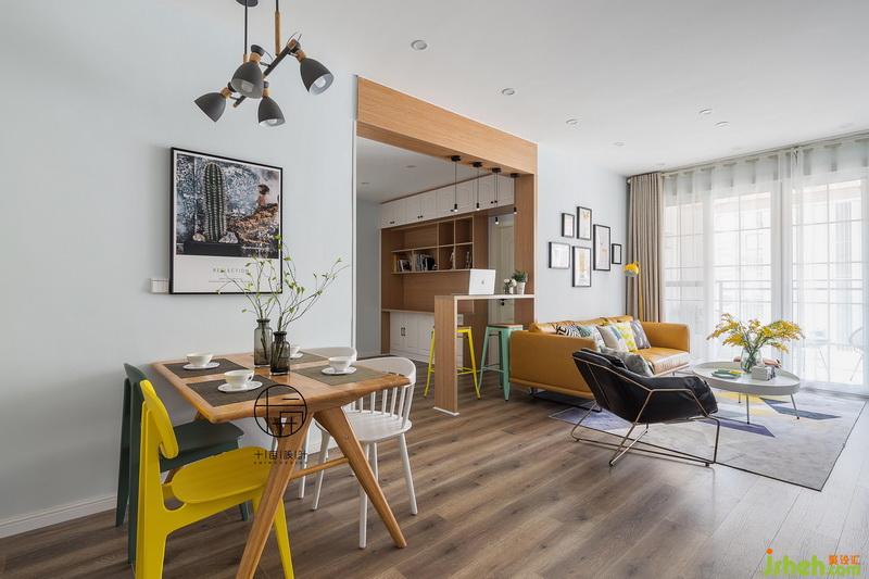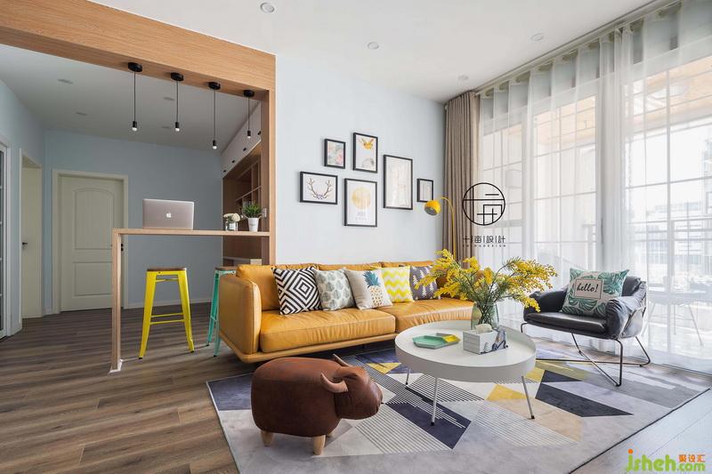 清淺干凈的硬裝搭配跳躍暖色軟裝,公領(lǐng)域空間充滿活力