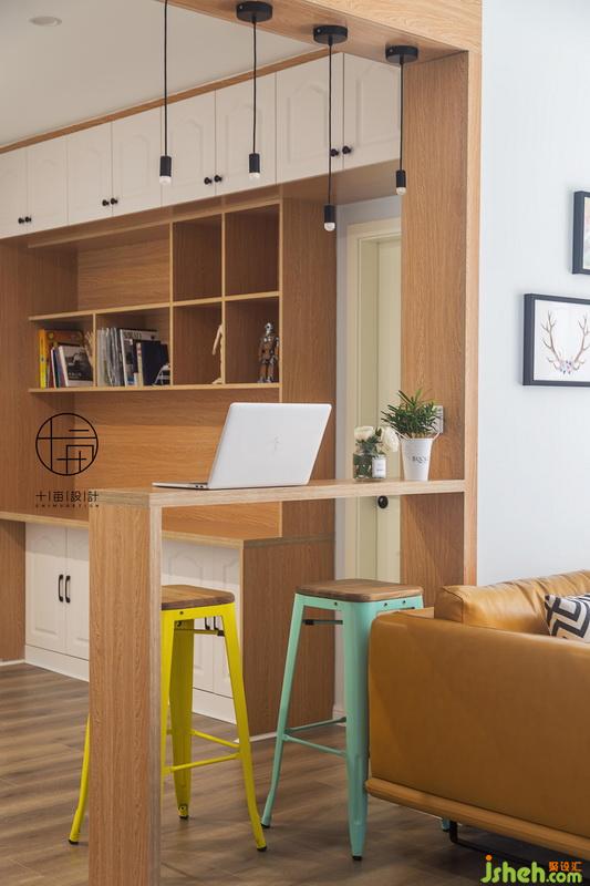將兒童房的位置移出增加多功能活動(dòng)區(qū)域,設(shè)計(jì)公司采用吧臺(tái)設(shè)計(jì)作分割,隔而不斷并從視覺上擴(kuò)大過道面積