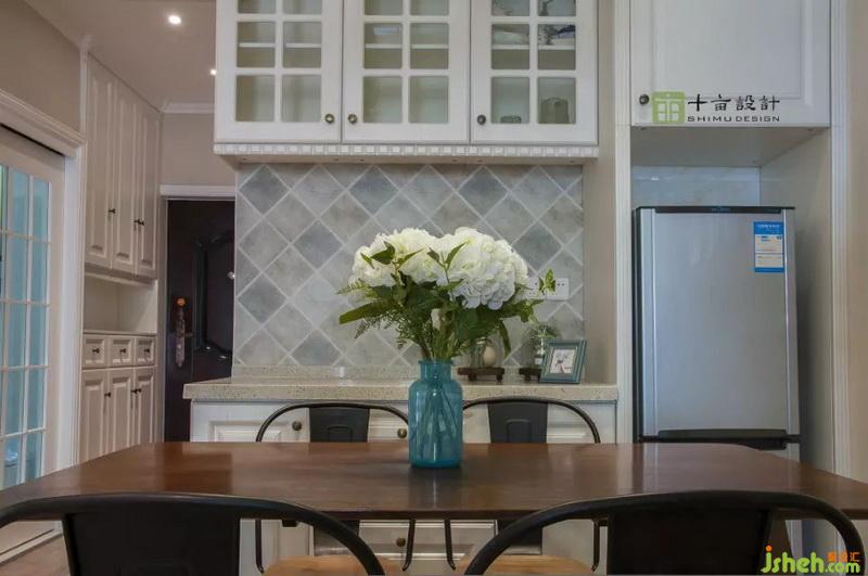 餐廳的“西廚”可以說是亮點(diǎn),因?yàn)樵镜膹N房太小,稍微人多一點(diǎn)就無法進(jìn)行操作,所以設(shè)計(jì)公司將別墅里面常用的中西廚分離的手法運(yùn)用了過來,解決了廚房小的難題。