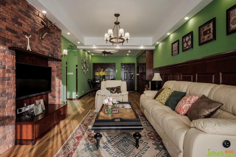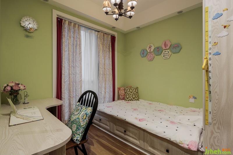 綠色,就是美好的開始。懷著這份期許,室內(nèi)設計師大膽的把墻體整面整面刷綠,室內(nèi)設計師在家具選擇了比較具有厚重感的美式風格,再搭配明黃色等亮色軟裝,整體效果干凈明了,像一棵大樹,有穩(wěn)穩(wěn)的根,有茂密的葉,有鮮艷的花,渾然一體,自然和暢。